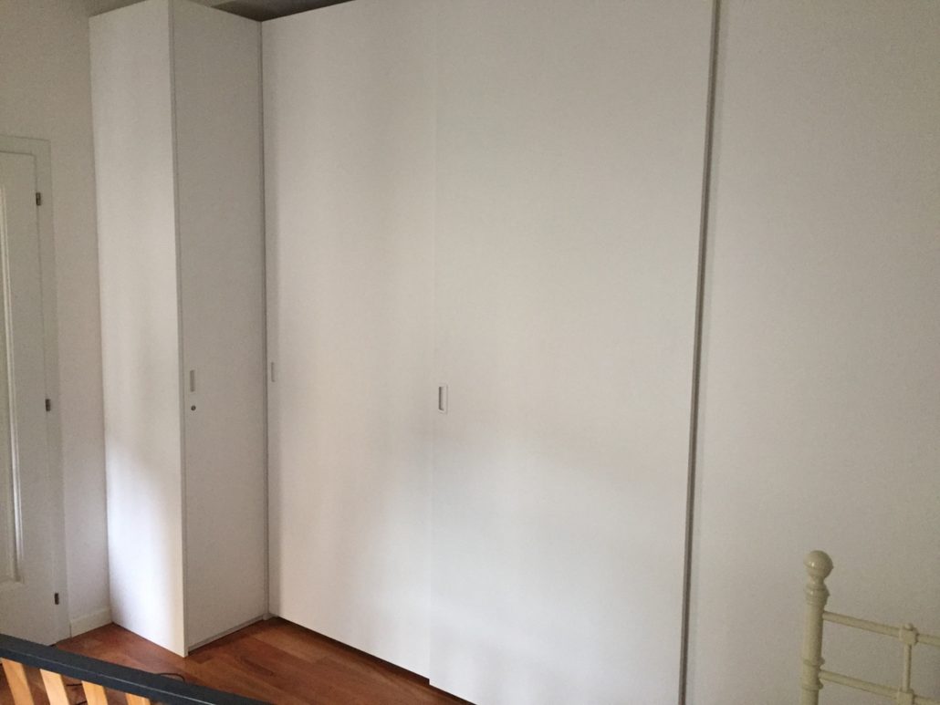 ..un armadio ad ante scorrevoli che copre completamente la lunghezza della parete.