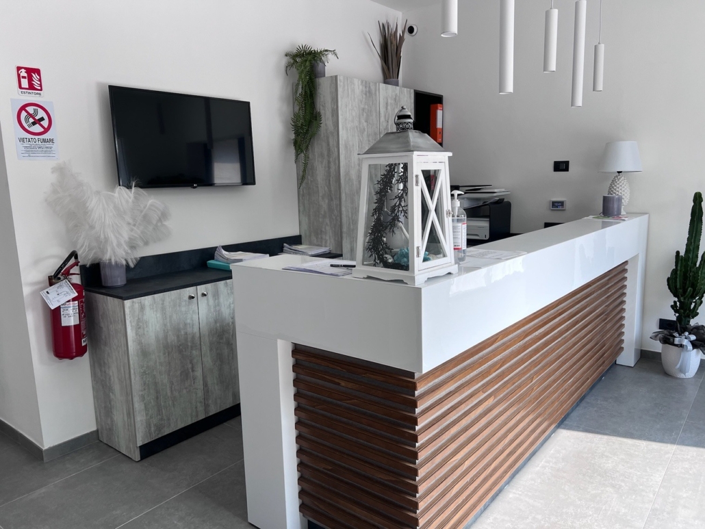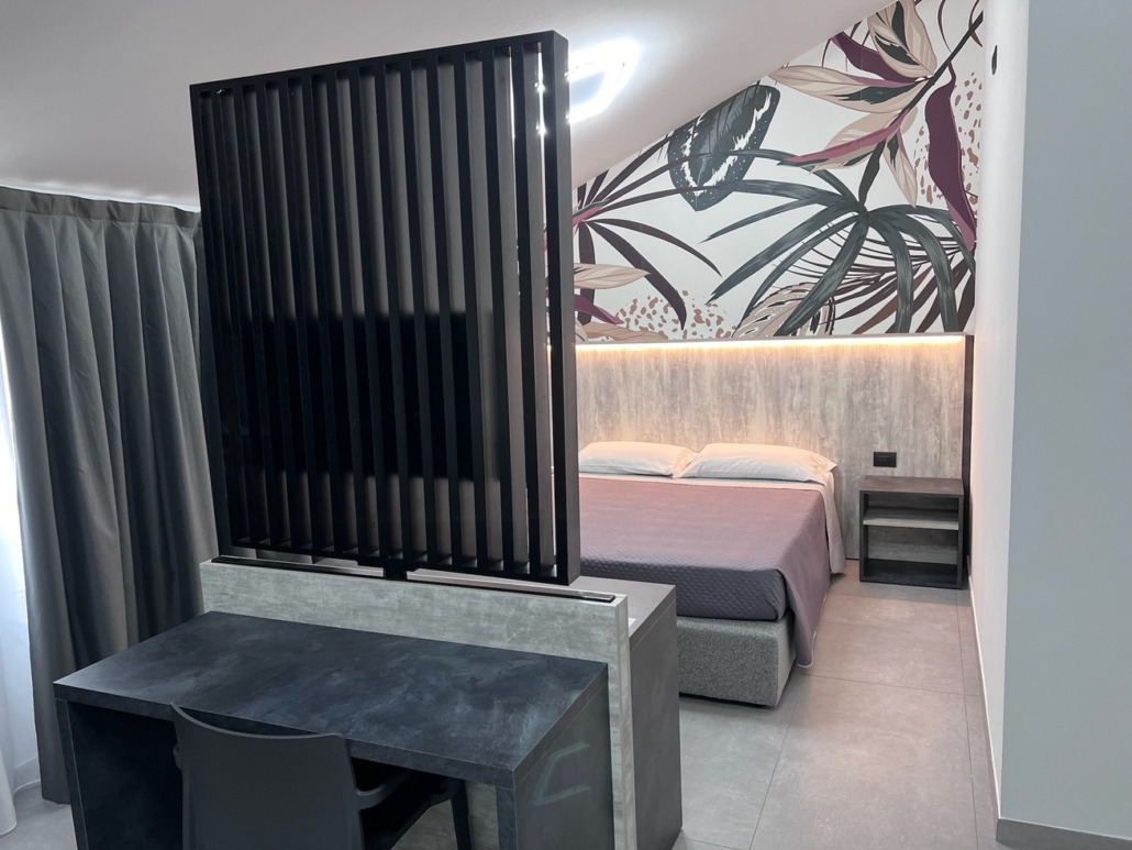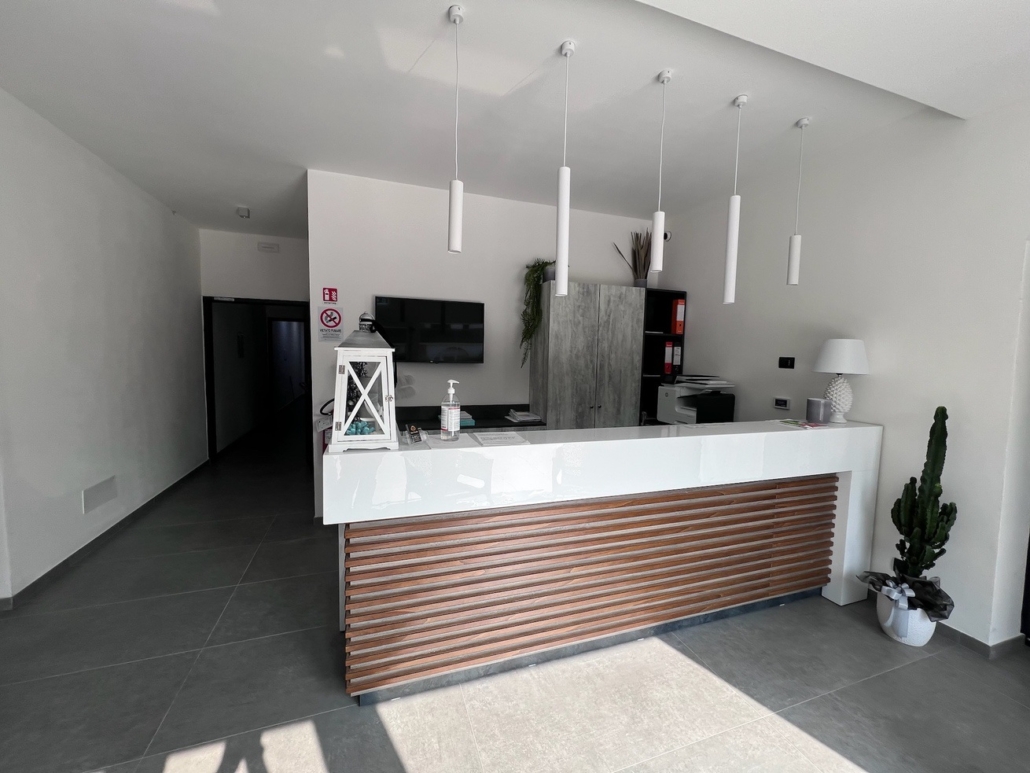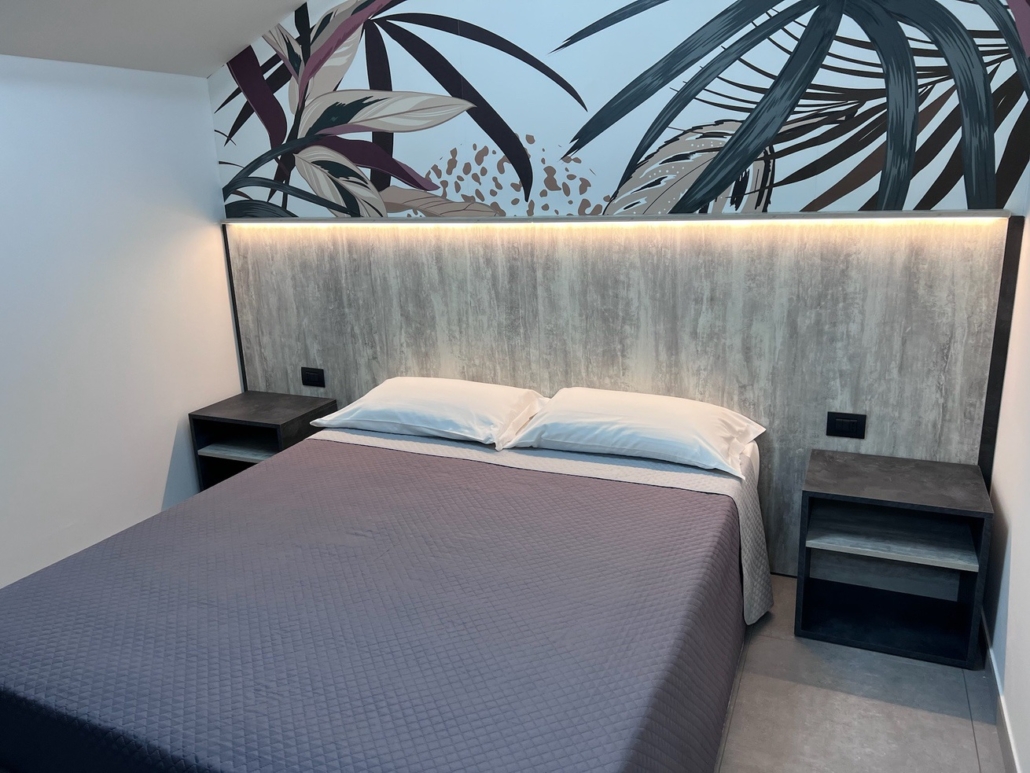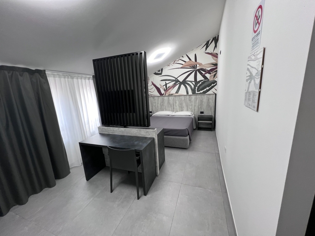 Per questo albergo abbiamo progettato e studiato tutto l’arredamento: dalla reception allla zona colazione, incluse le 15 camere divise tra singole doppie e triple.