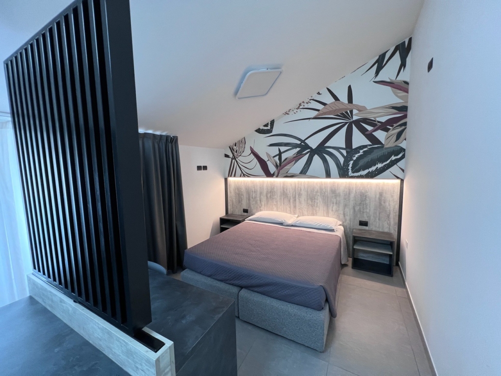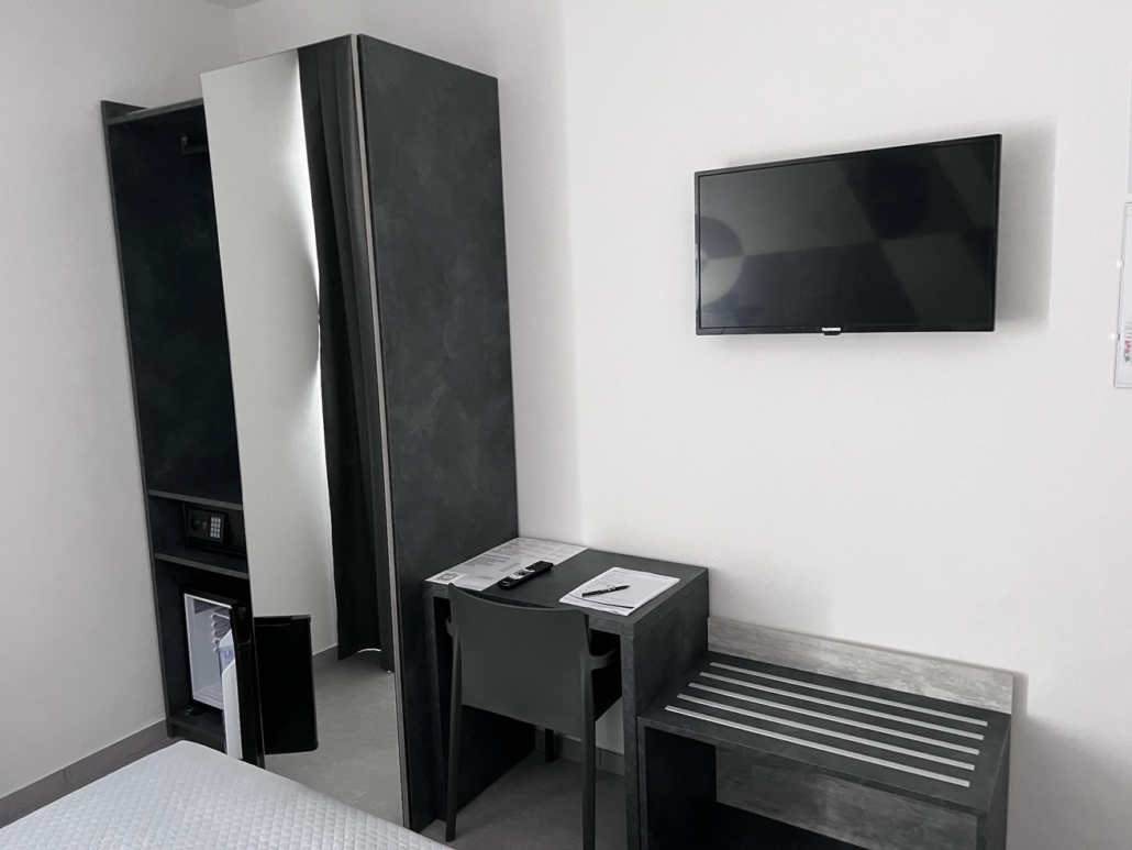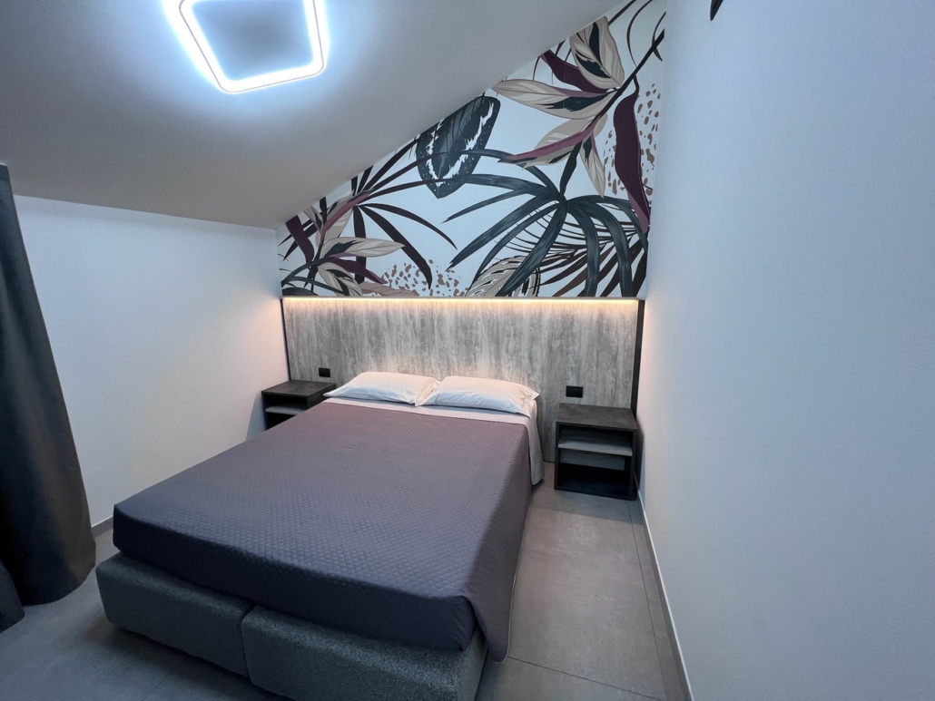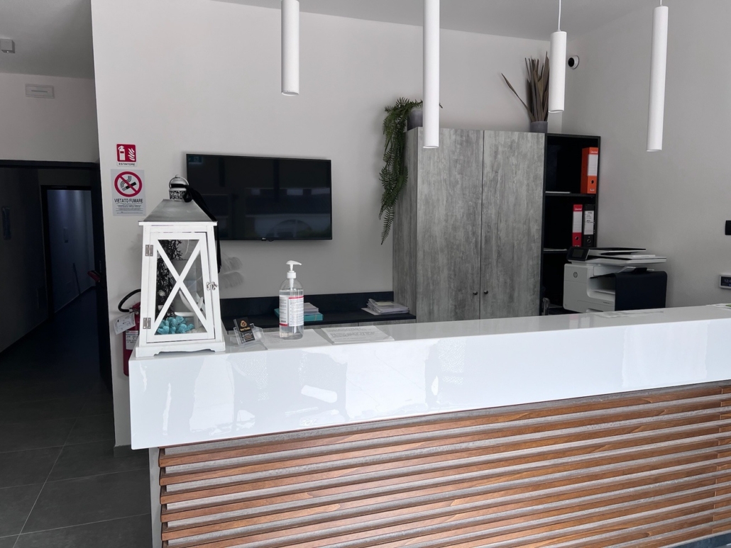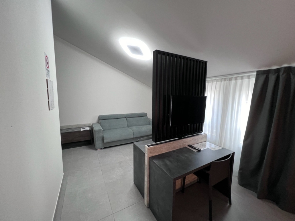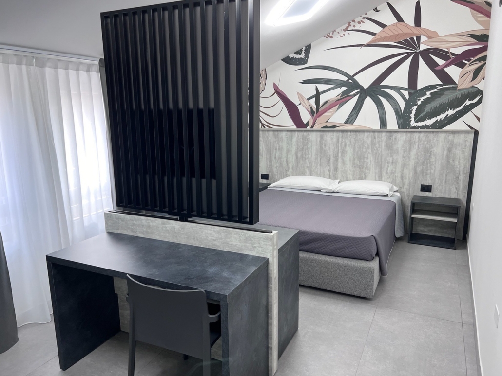 Per questo albergo abbiamo progettato e studiato tutto l’arredamento: dalla reception allla zona colazione, incluse le 15 camere divise tra singole doppie e triple.