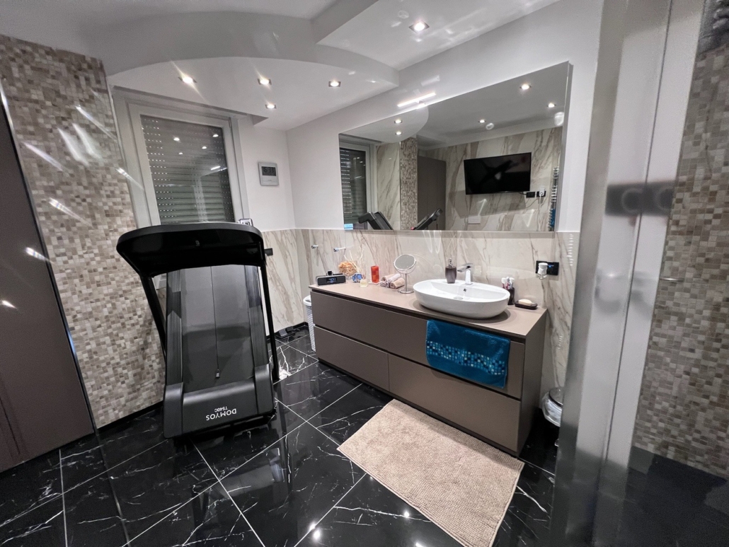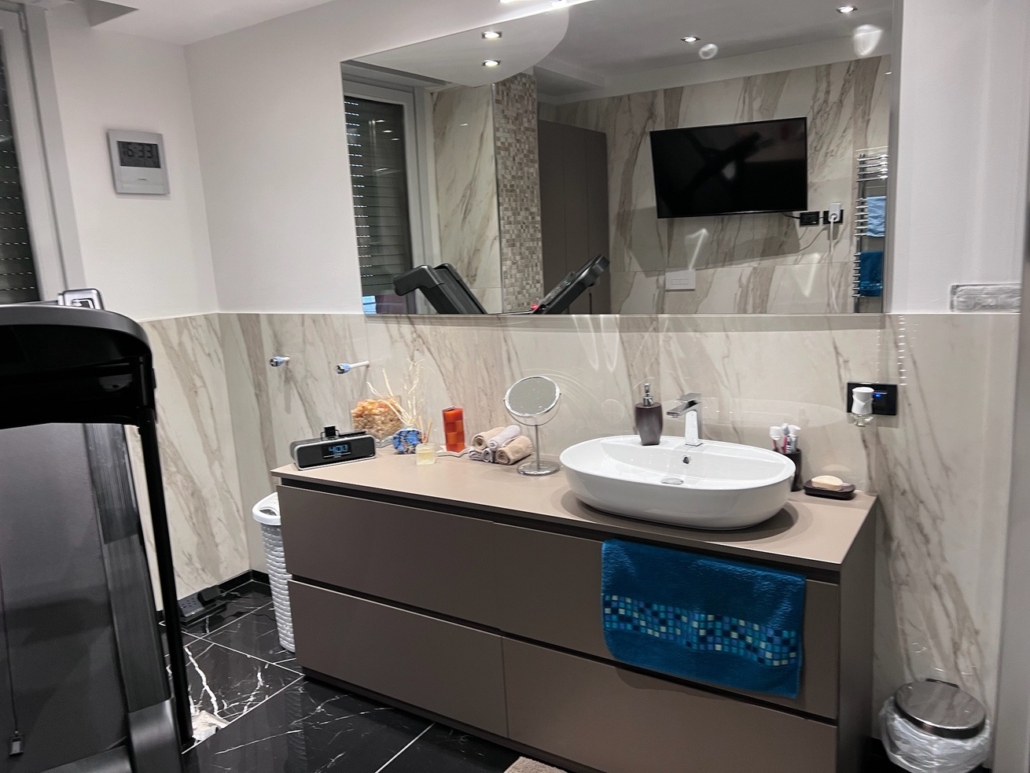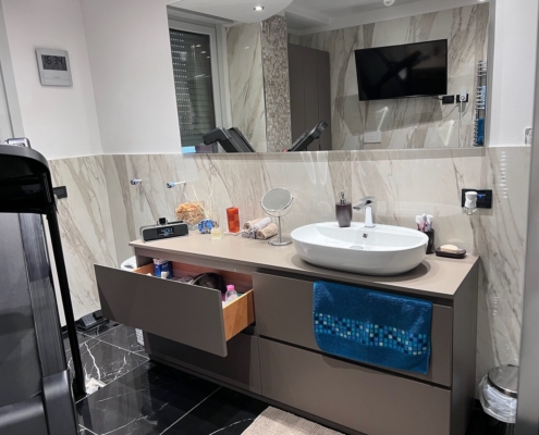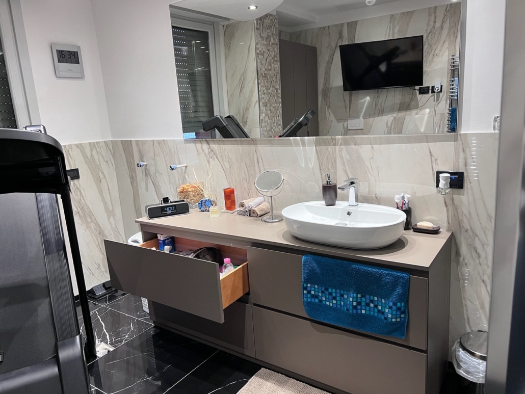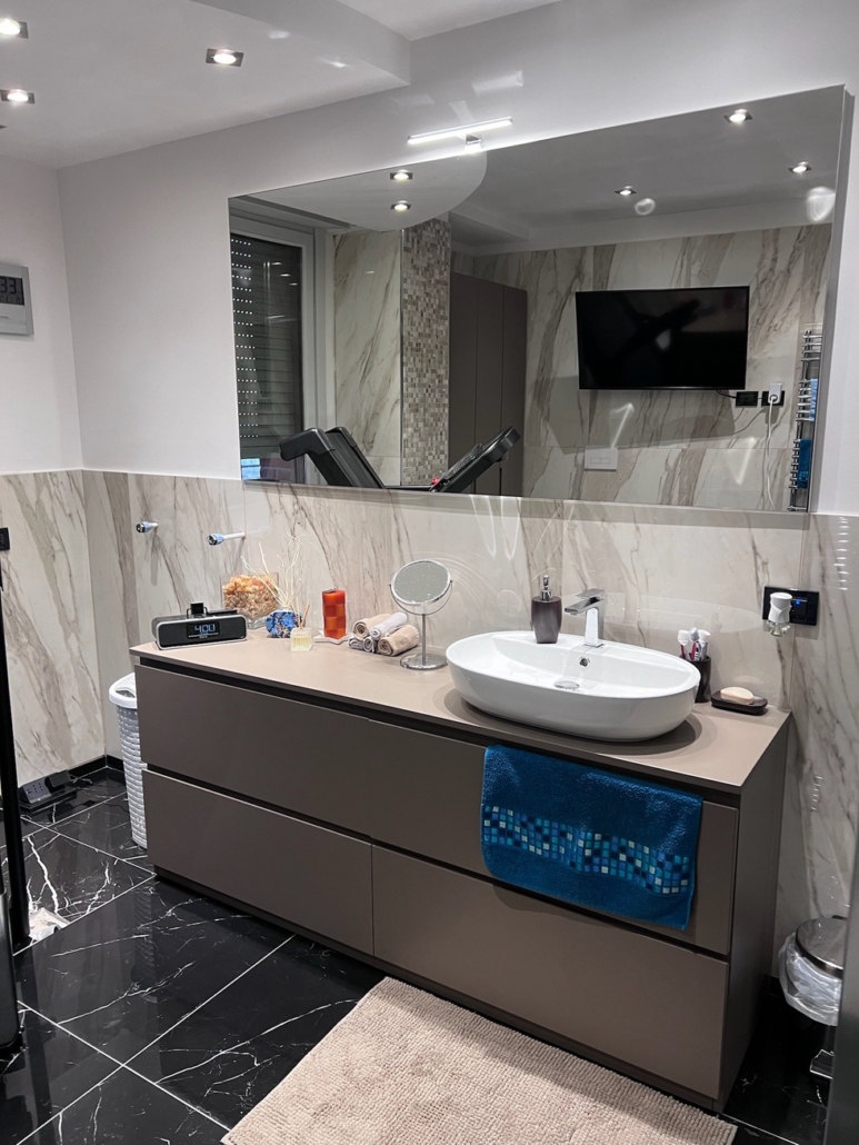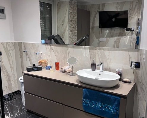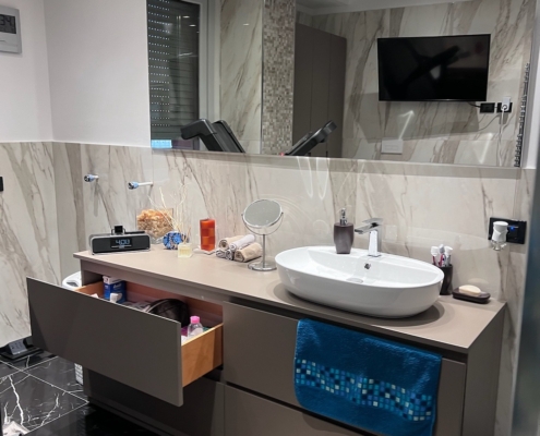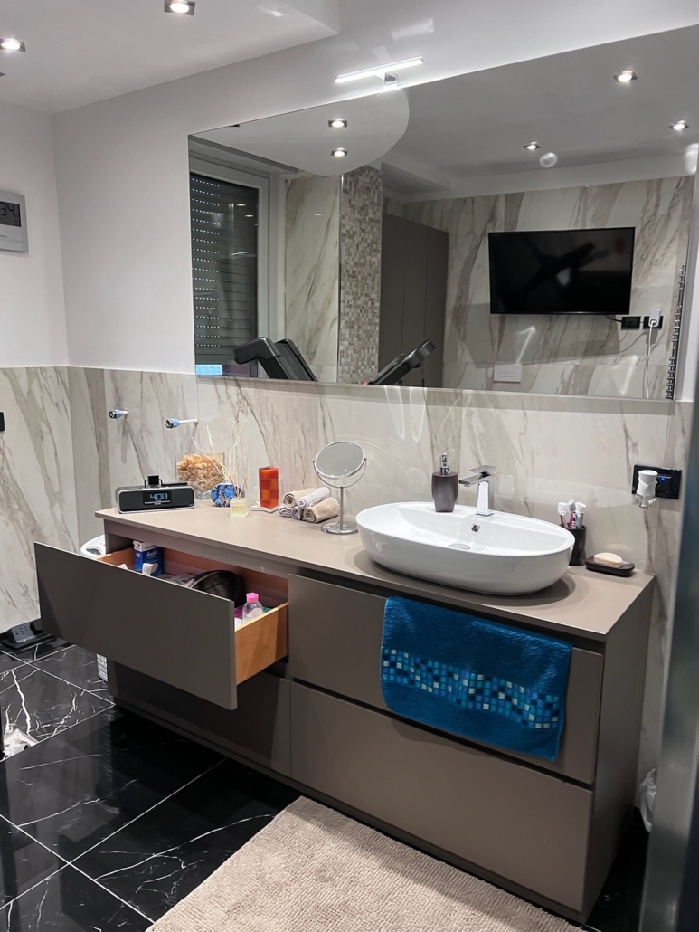 Mobile bagno su misura completamente in MDF idrorepellente laccato opaco a campione.