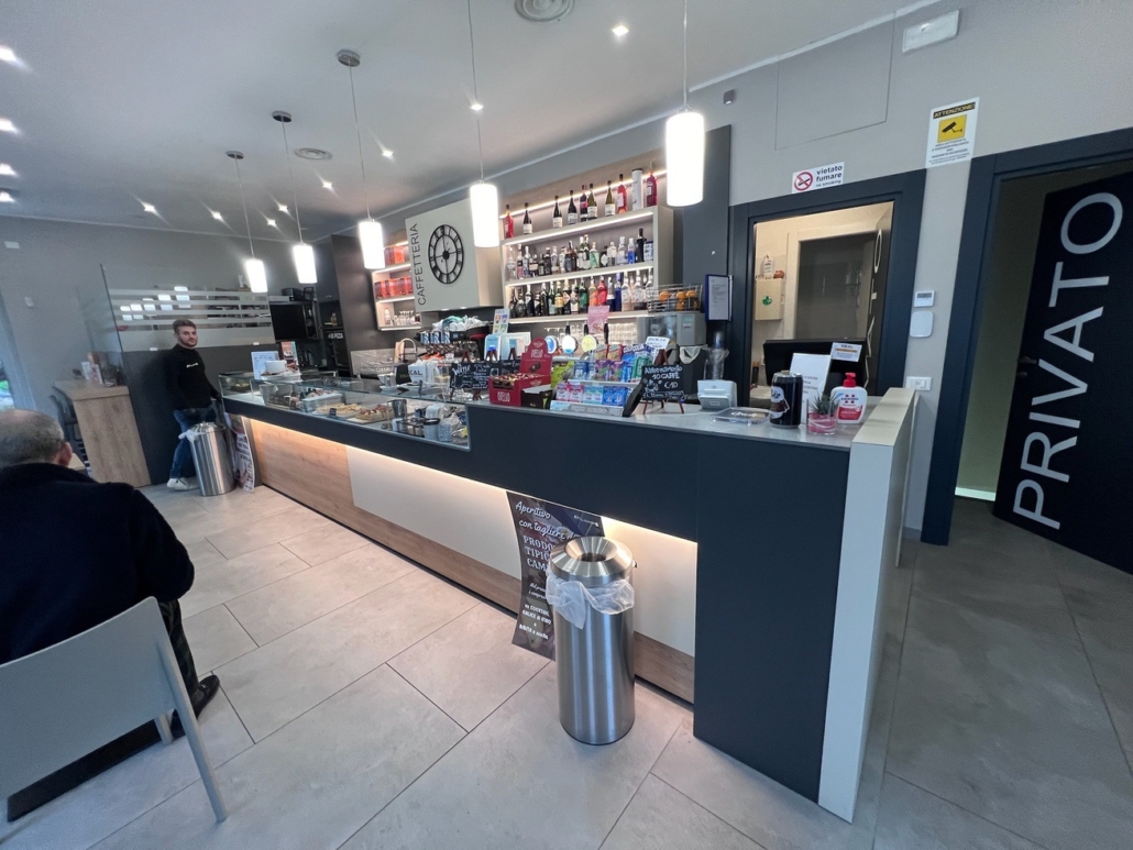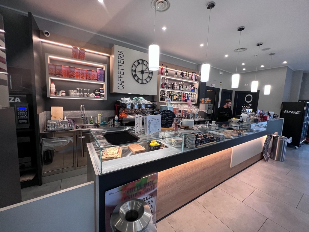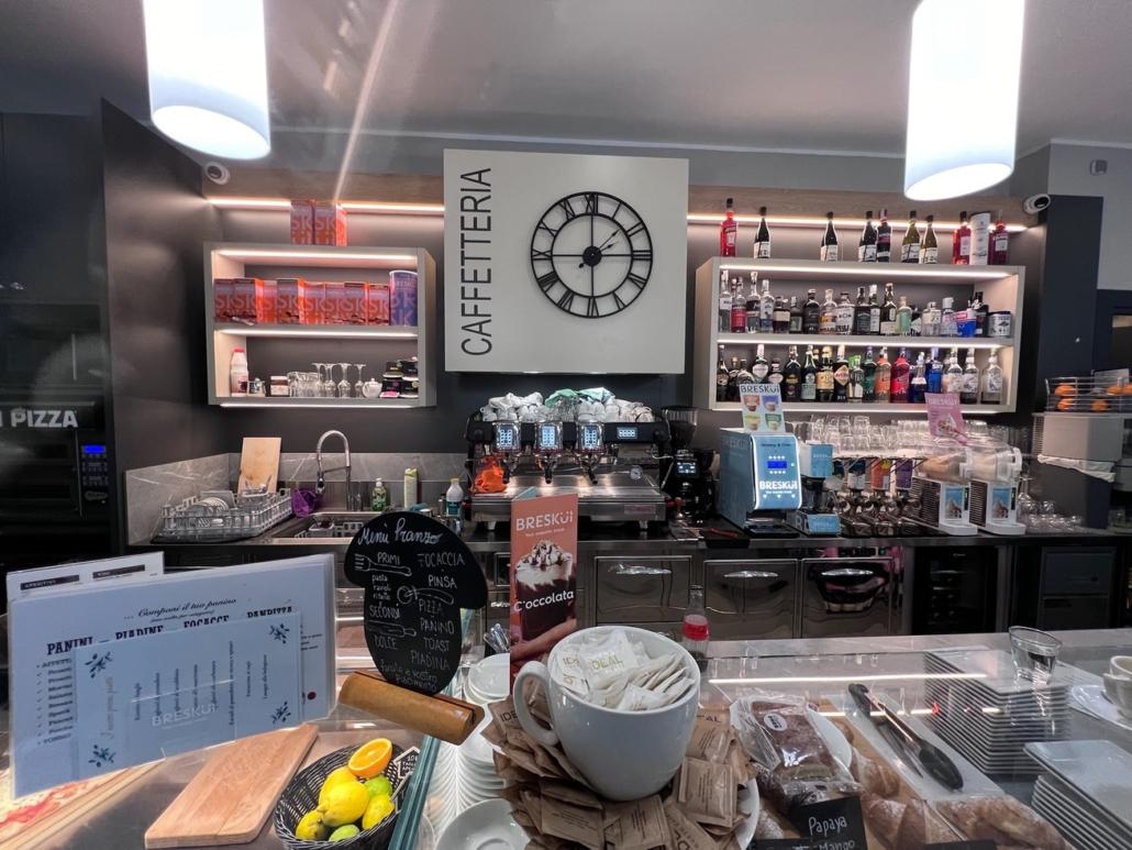 La zona per la macchina del caffè è attrezzata con tramoggia e batti filtro.